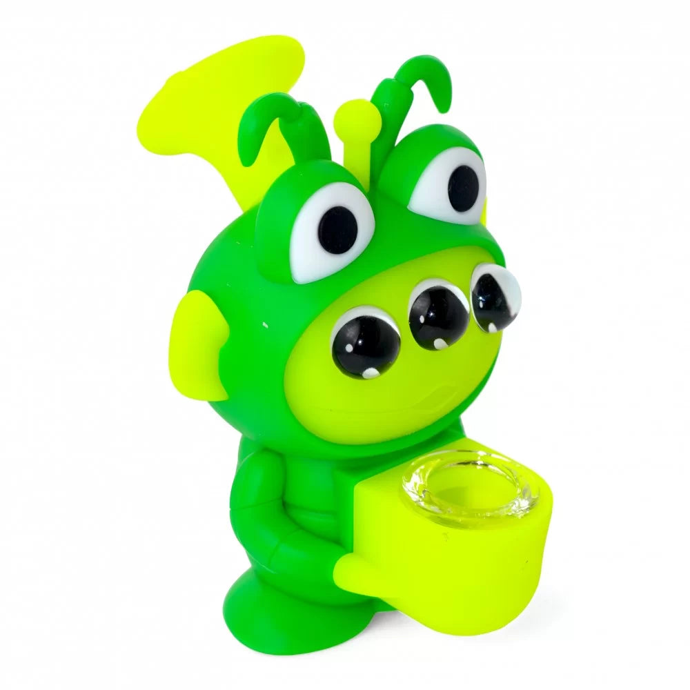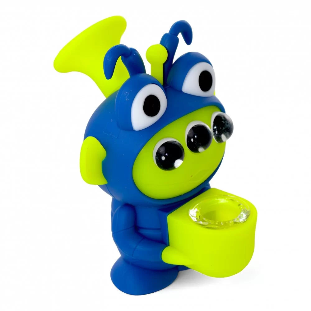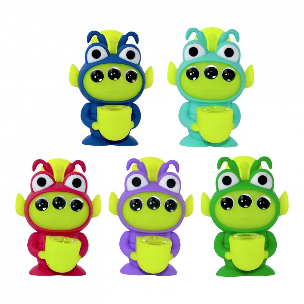 4.5" Alien Abode Tri-Eyed Beast W/ Glass Bowl Dish Silicone Water Pipe