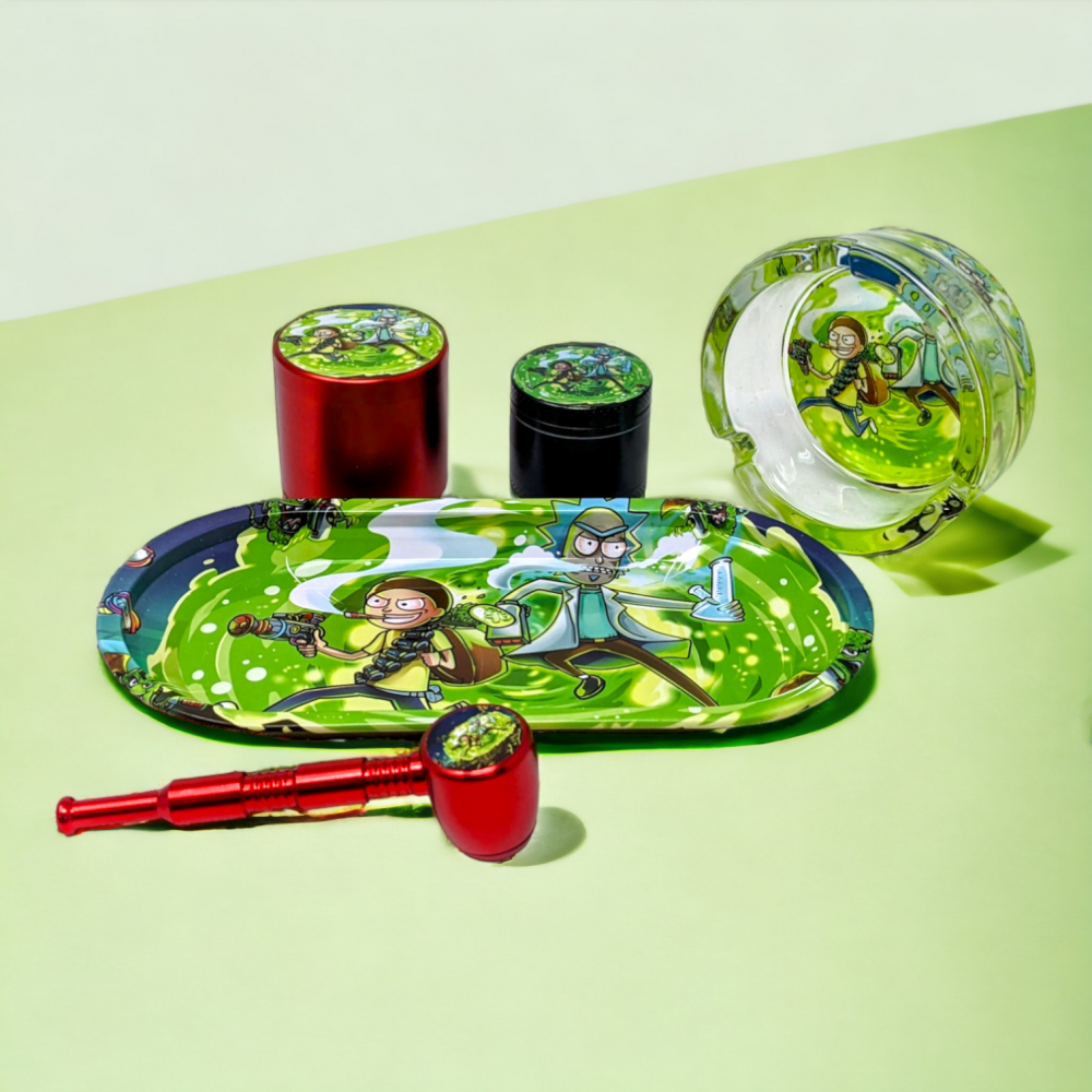 This set includes a premium quality ash tray, custom designed small grinder, small tray, metal container and a metal pipe.
